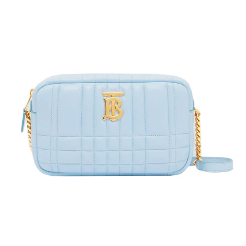 BURBERRY/博柏利 22新款 Lola系列 女士小号浅蓝色绗缝小羊皮拉链开合金色金属抛光配件小羊皮表带配金色调节链条单肩斜挎相机包80606581