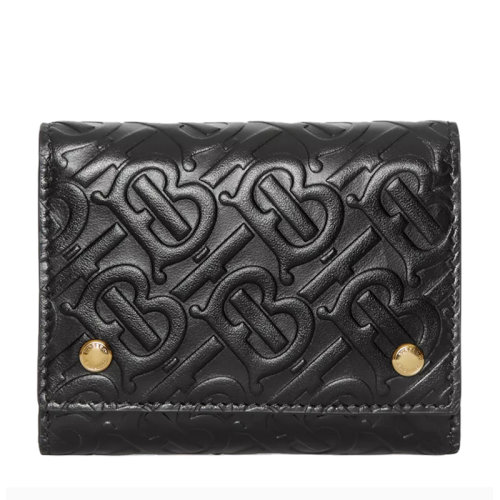 BURBERRY/博柏利 巴宝莉女包 经典TB图案 女士黑色皮质时尚折叠卡包钱包 80115021