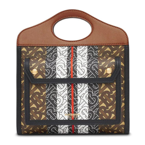 【预售3-4周】BURBERRY/博柏利 女士棕褐色电子帆布Monogram条纹TB印花手提包单肩包斜挎包女包 8019365