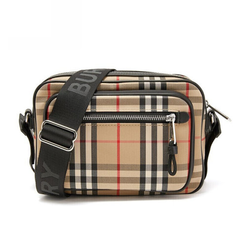 BURBERRY/博柏利 男士Vintage 格纹单肩斜跨包 相机包 古典黄色单肩包 8010152