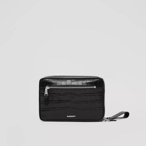 BURBERRY 22年秋冬 男士 压花格纹皮革拉链收纳袋 80583671