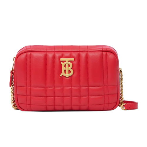BURBERRY/博柏利 22新款 Lola系列 女士小号亮红色绗缝小羊皮拉链开合金色金属抛光配件小羊皮表带配金色调节链条单肩斜挎相机包80606591