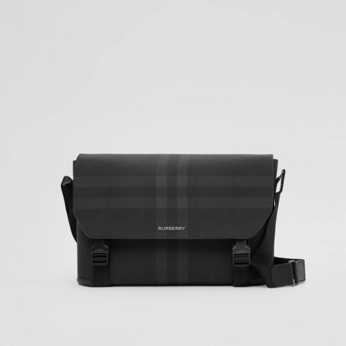 BURBERRY 22年秋冬 男士 炭灰色格纹拼皮革大号信使包 80543881