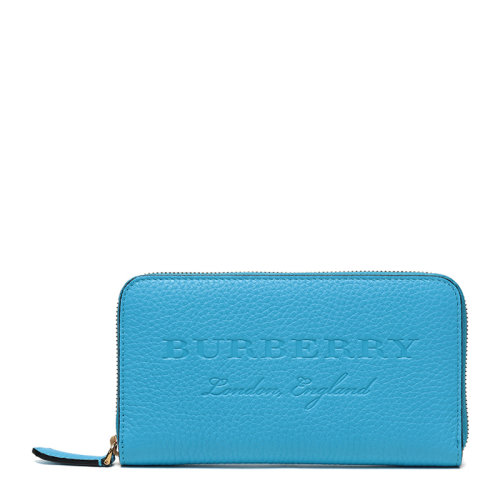 BURBERRY/博柏利 女款蓝色皮革拉链徽标手拿包钱包腕包零钱包女包 4062428
