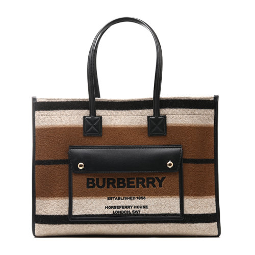 BURBERRY/博柏利22春夏字母徽标拼色条纹女士手提单肩包托特包8049066
