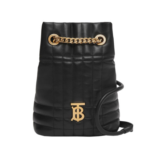 BURBERRY/博柏利 Lola系列 女士小号枫棕色绗缝小羊皮手提单肩水桶包80462551
