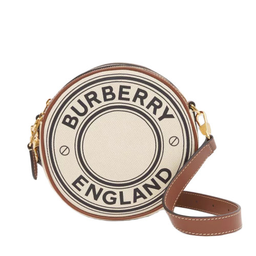 BURBERRY/博柏利 新Louise系列 米色帆布配皮革饰有logo圆形斜挎单肩包 80276021