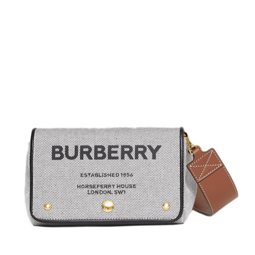 BURBERRY/博柏利 男女同款小号棉质帆布黑色/棕褐色Horseferry印花双色调单肩斜挎包80398691