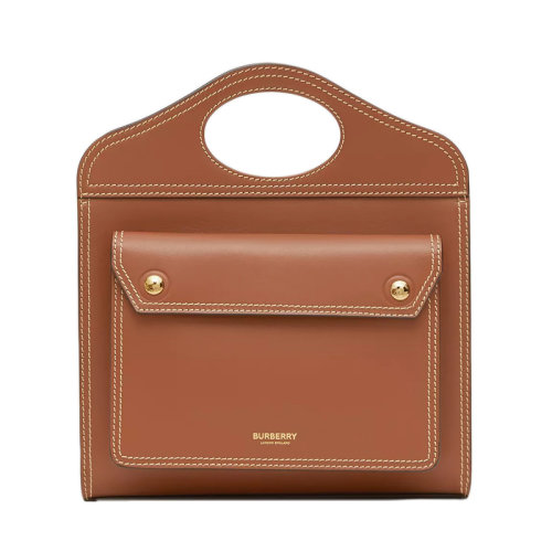 BURBERRY/博柏利 迷你缉明线皮革麦芽棕口袋包手提单肩包80147761