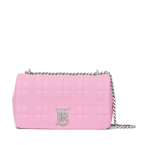 BURBERRY/博柏利 Lola系列 女士小号樱草花粉色绗缝羊皮TB徽标链条斜挎单肩萝纳包80459911