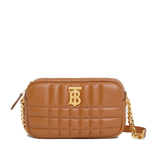 BURBERRY/博柏利 22春夏新款Lola系列 女士迷你枫棕色绗缝羊皮革TB金扣装饰单肩斜挎相机包80490481