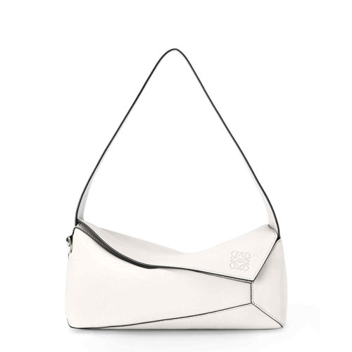 LOEWE/罗意威 22春夏新款Puzzle Hobo系列 女士棉白色拼接效果牛皮革徽标压印金扣单肩斜挎拼图包0010701423