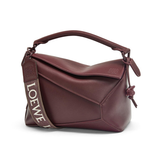 LOEWE/罗意威 22新款 Puzzle Edge系列 女士小号深紫釉缎面小牛皮同色金属配饰兔子吊饰拆卸调节肩带手提单肩斜挎拼图包A510P60X24-8768