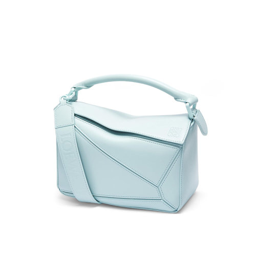 LOEWE/罗意威 22年新款 Puzzle系列 女士小号海蓝色缎面小牛皮单肩斜挎手提拼图包A510S21X88-9514
