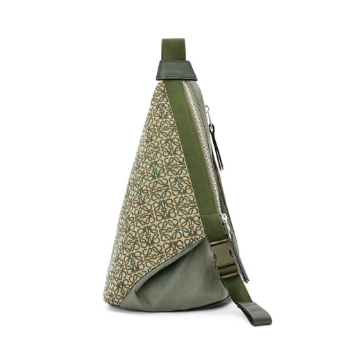 LOEWE/罗意威 22年新款 男士卡其绿提花帆布配调节织带拉链开合金属扣肩背斜挎包B664M44X01-4160