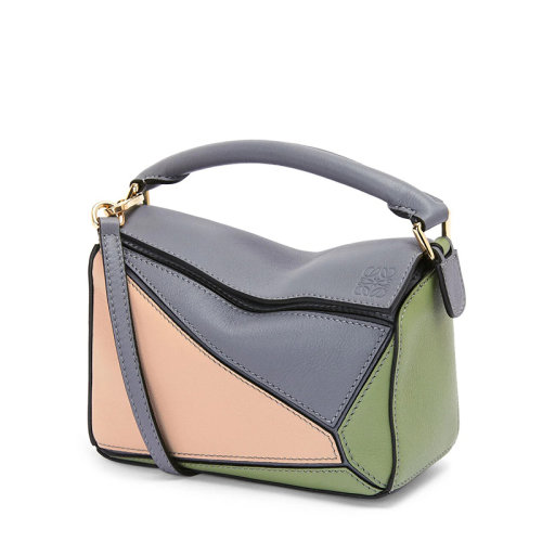 LOEWE/罗意威 22新款Puzzle系列 女士迷你款沥青灰/裸色经典小牛皮拼色单肩斜挎手提拼图包A510U95X34-2828