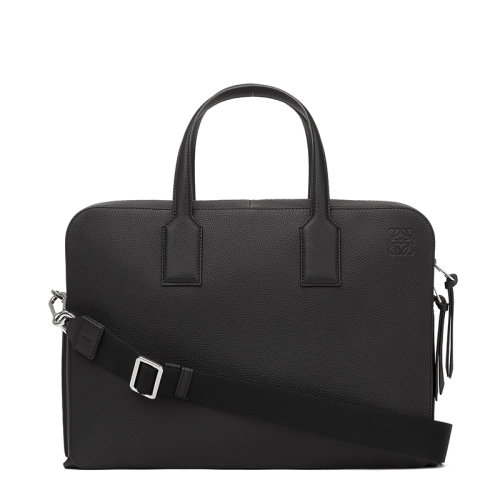 LOEWE/罗意威 22春夏新款Goya系列 男士黑色粒面牛皮革薄款Anagram压纹附肩带公文包 0010144210