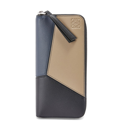LOEWE/罗意威 22新款Puzzle系列 男士蓝色/咖啡色/黑色三色拼接牛皮革拉链开合拼图钱包C510U46X04-4456