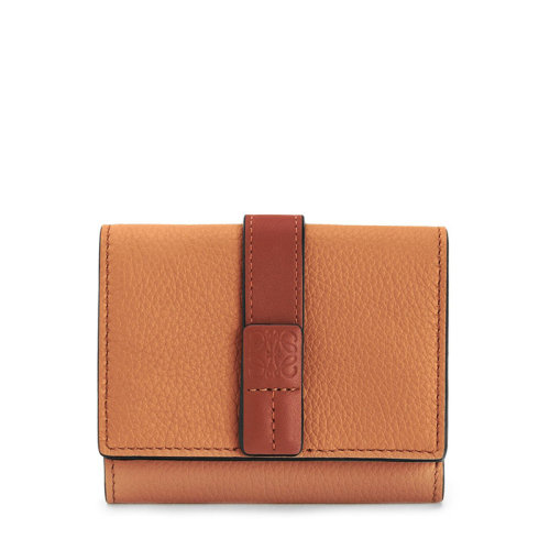 LOEWE/罗意威 21新款 女士浅焦糖色/山核桃色粒面小牛皮按扣三折钱包0010527794