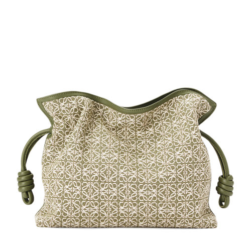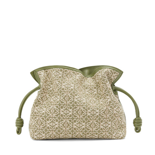LOEWE/罗意威 Flamenco系列 女士绿色鳄梨绿色徽标提花织物配皮束带单肩手拿包0010642825