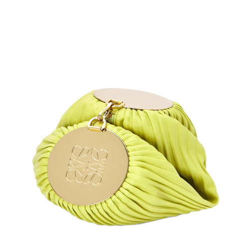 LOEWE/罗意威 女士柠檬黄色褶皱纳帕皮革金色金属饰面手提手链手拿包00106472