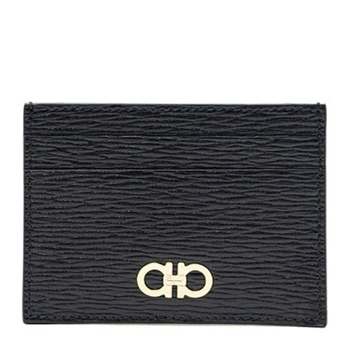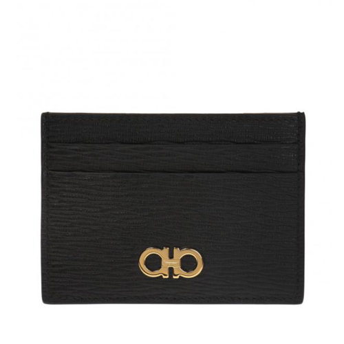 Salvatore Ferragamo/菲拉格慕 男士黑色金色Gancini标志卡包 66-A302-698911
