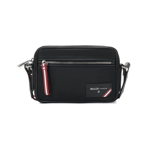BALLY/巴利 男士黑色尼龙配皮Trainspotting红白条纹字母徽标单肩包斜挎包邮差包男男包 6220467