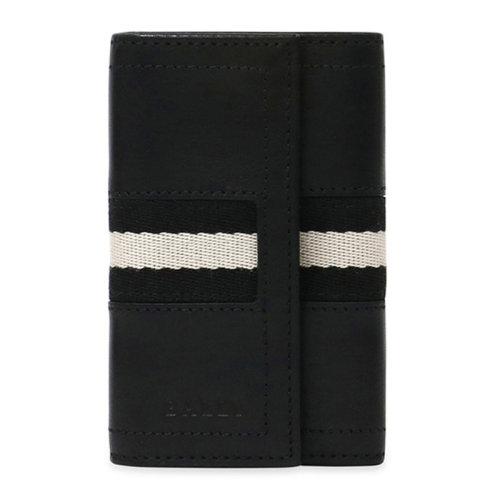 BALLY/巴利 黑色条纹 拼接短款 牛皮革卡包 6218027BOEMNEBL