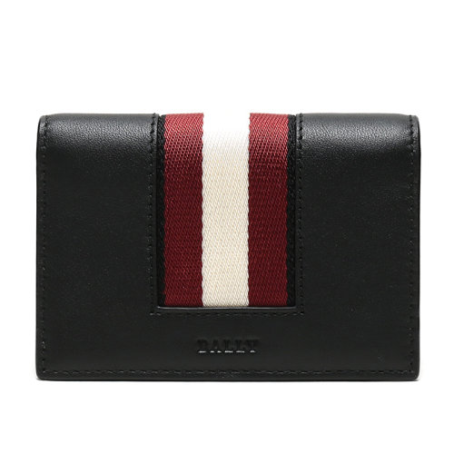 BALLY/巴利 Byda系列男士黑色牛皮经典字母徽标压花红白条纹装饰短款双折钱夹钱包卡包零钱包男包 6235669【预售3-4周发货】
