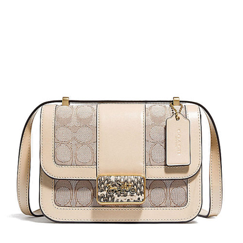 COACH/蔻驰Nora Kisslock系列女士拼色涂层帆布配皮经典双C字母徽标装饰单肩包斜挎包女包 C2876 多色可选