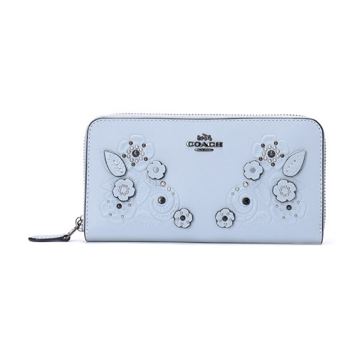 COACH/蔻驰 女包 花卉图案 女士皮质时尚拉链开合长款钱包 12039_DKBLK