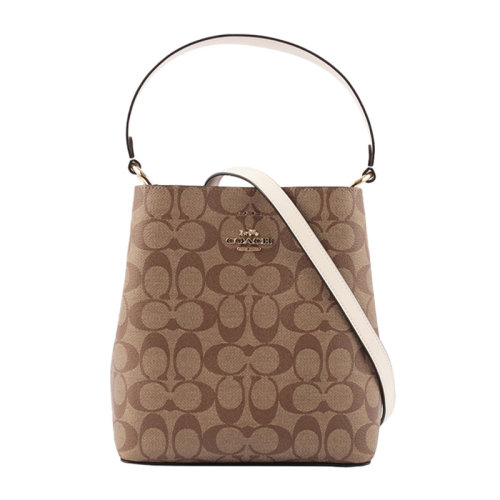 COACH/蔻驰 女士拼色PVC配皮经典双C字母徽标印花装饰磁扣开合单肩包斜挎包手提包水桶包女包 F2312 多色可选