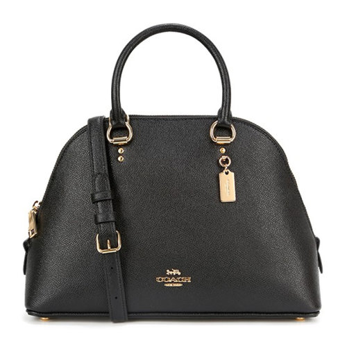 COACH/蔻驰【奥莱款】Katy Satchel系列女士纯色横纹皮革经典字母马车徽标装饰拉链开合单肩包斜挎包手提包贝壳包女包 F2553 多色可选