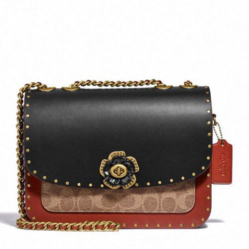 COACH/蔻驰女士拼色皮革经典马车徽标磁扣开合单肩包斜挎包手提包酒神包腋下包女包 F5568QBRL1