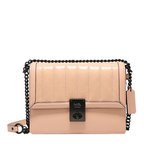 COACH/蔻驰 HUTTON系列女士纯色绗缝皮革经典马车金属徽标旋扣开合单肩包斜挎包链条包小方包女包 89066 多色可选