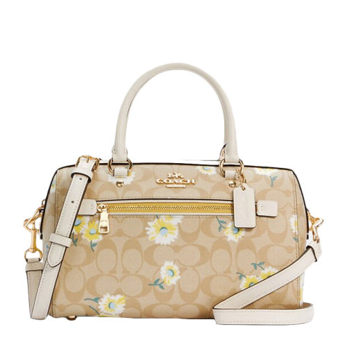 COACH/蔻驰女士拼色印花涂层帆布配皮经典双C字母徽标印花小雏菊装饰拉链开合单肩包斜挎包手提包公文包女包 C2849IMOTV