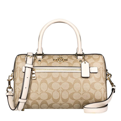 【奥莱款】COACH/蔻驰 女士拼色PVC/配皮经典印花波士顿桶包手提包单肩包斜挎包女包 F83607多色可选