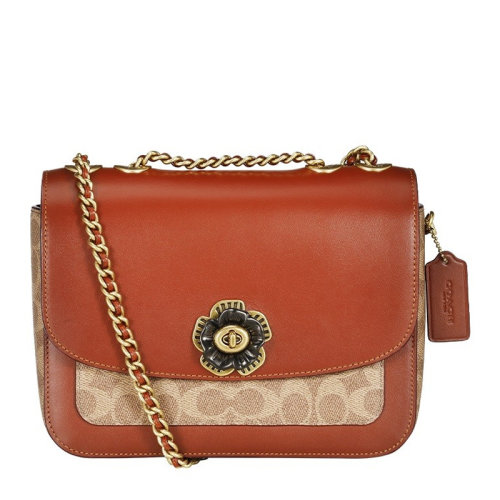 COACH/蔻驰MADISON系列女士拼色帆布/配皮经典双C字母徽标山茶花单肩包斜挎包链条包女包 C0827B4NQ4