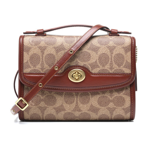COACH/蔻驰 Charlie Carryall系列女士拼色涂层帆布配皮经典双C字母徽标印花单肩包斜挎包手提包女包 4146 多色可选