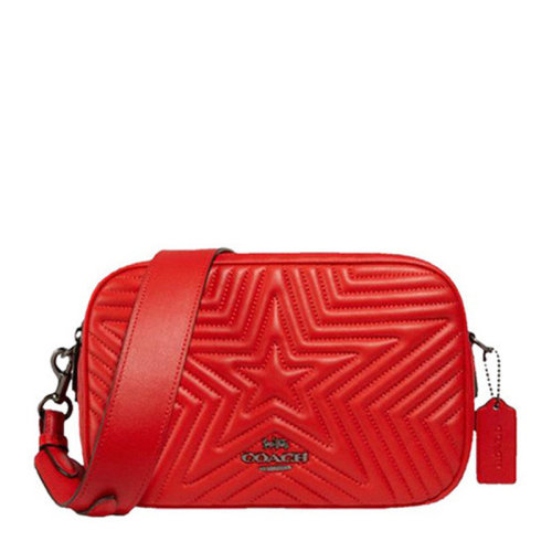 COACH/蔻驰 jes系列女士红色牛皮星星条纹字母徽标拉链开合单肩包斜挎包盒子包相机包女包 F1904QBQRG