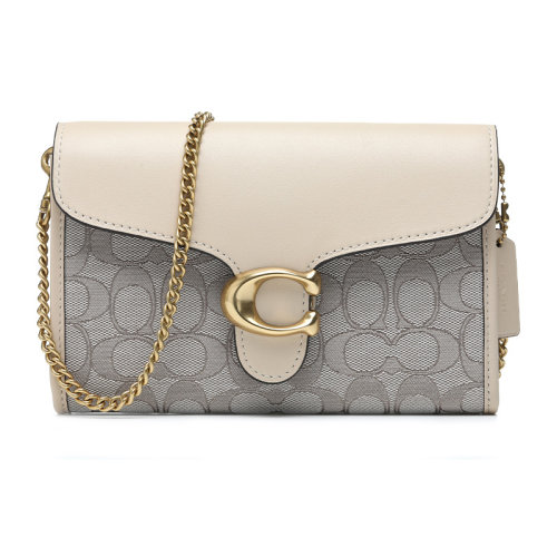 COACH/蔻驰【专柜款】Kip Turnlock系列女士拼色涂层帆布配皮经典双C字母徽标印花旋扣开合单肩包斜挎包手提包女包 C4204B4NQ4