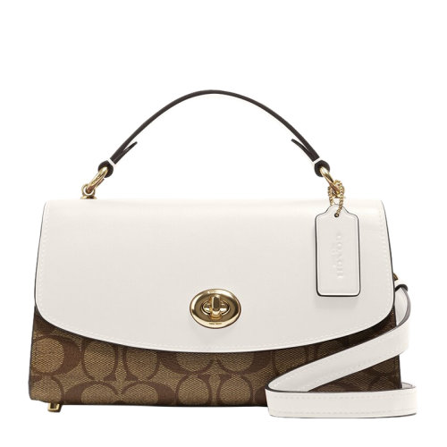 COACH/蔻驰 Rambler系列女士纯色皮革金属C字徽标旋扣开合翻盖包单肩包斜挎包小方包盒子包女包 89127 多色可选