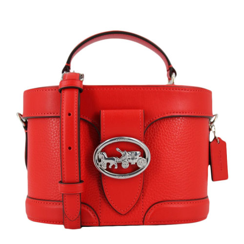 COACH/蔻驰 女士红色PVC/配皮马车徽标按扣翻盖单肩包斜挎包盒子包化妆包女包 F5503SVRCK