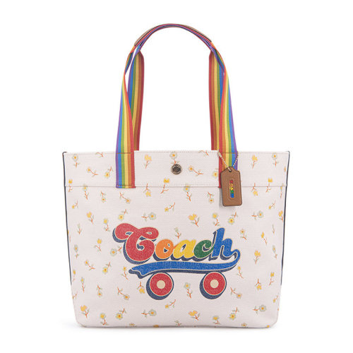 COACH/蔻驰女士拼色经典字母徽标彩虹滑板印花磁扣开合彩虹肩带单肩包手提包托特包购物包女包 C4099IMCAH