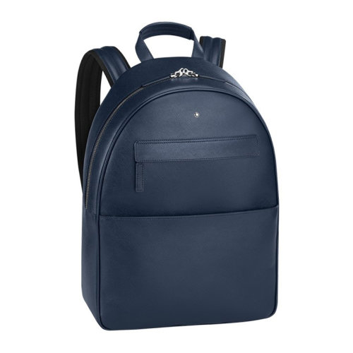 MontBlanc/万宝龙 男士蓝色皮革大圆顶靛蓝意大利双肩包休闲旅行背包 116755