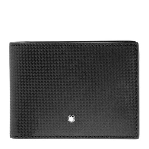 MontBlanc/万宝龙 男女同款中性黑色编织碳纤维设计皮革皮革短款双折钱夹钱包卡夹卡包零钱包 114637