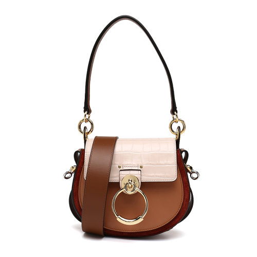 CHLOE/克洛伊 女士橘红色小牛皮拼接羊皮圆环装饰细肩带翻盖单肩包斜挎包女包 C19AS231-B43-247