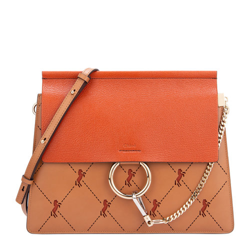 Chloe/克洛伊 Faye系列 女士橙红色牛皮金属环时尚单肩斜挎包