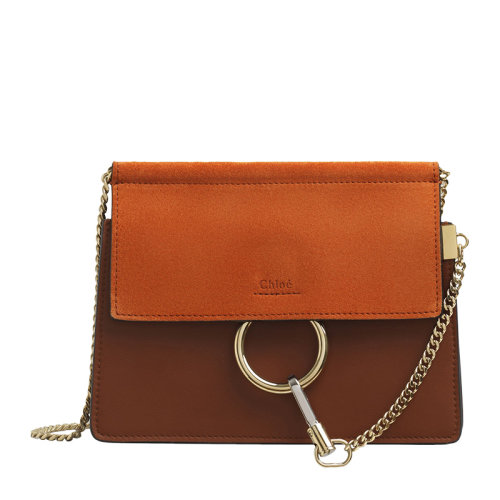 Chloe/克洛伊 Faye系列 女士橙红色牛皮金属环时尚单肩斜挎包