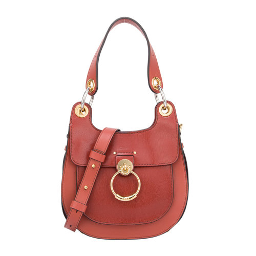 CHLOE/克洛伊 女士橘红色小牛皮拼接羊皮圆环装饰细肩带翻盖单肩包斜挎包女包 C19AS231-B43-247